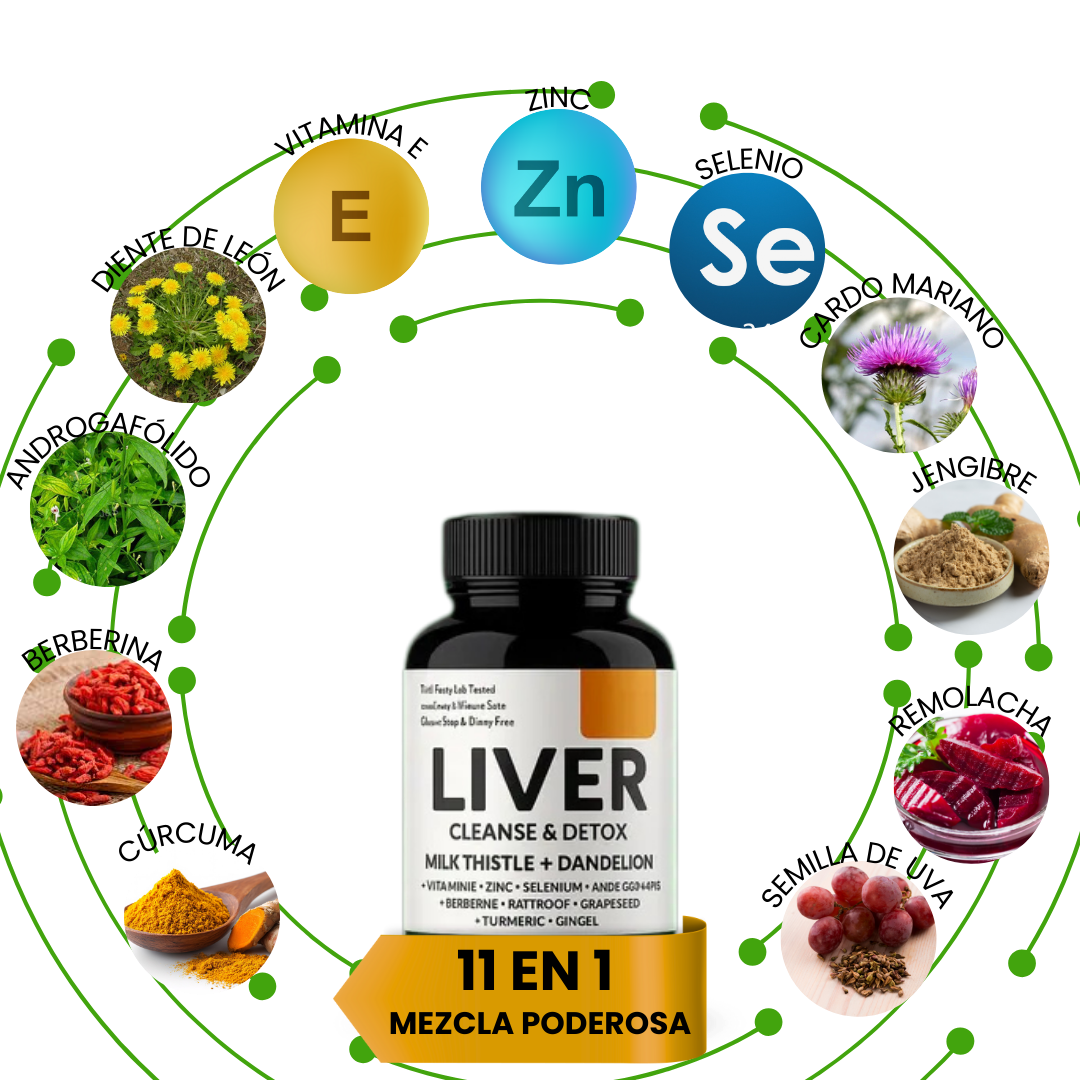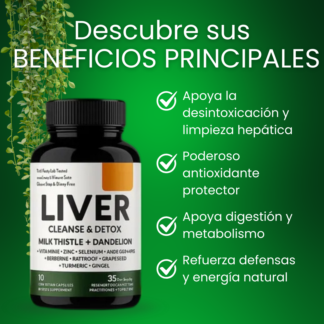 Porque no solo desintoxica el hígado, lo restaura desde adentro. Su fórmula con cardo mariano, diente de león y antioxidantes trabaja de forma natural para eliminar toxinas, mejorar la digestión, aumentar la energía y apoyar la salud metabólica. Es una solución completa: limpia, protege y revitaliza, ayudando a que tu cuerpo funcione en su máximo potencial cada día.