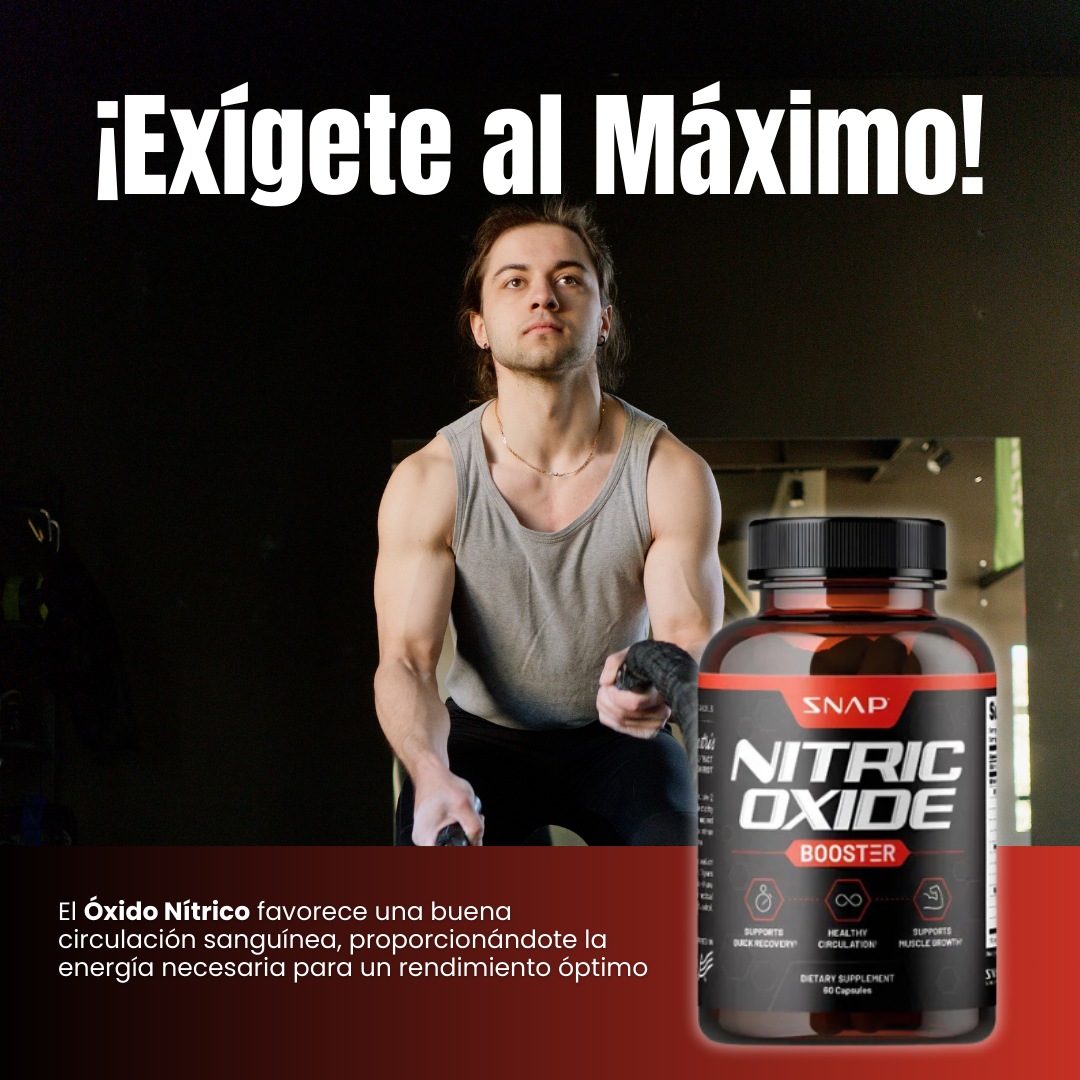 Nitric Oxide Booster es el suplemento que multiplica tu rendimiento físico desde el primer entrenamiento. Su fórmula avanzada aumenta el flujo sanguíneo, potencia la energía y mejora el bombeo muscular, permitiendo entrenar más fuerte, recuperarse más rápido y lograr mayor crecimiento muscular. Ideal para deportistas, gym lovers y cualquiera que quiera llevar su cuerpo a un nuevo nivel de desempeño y fuerza.
